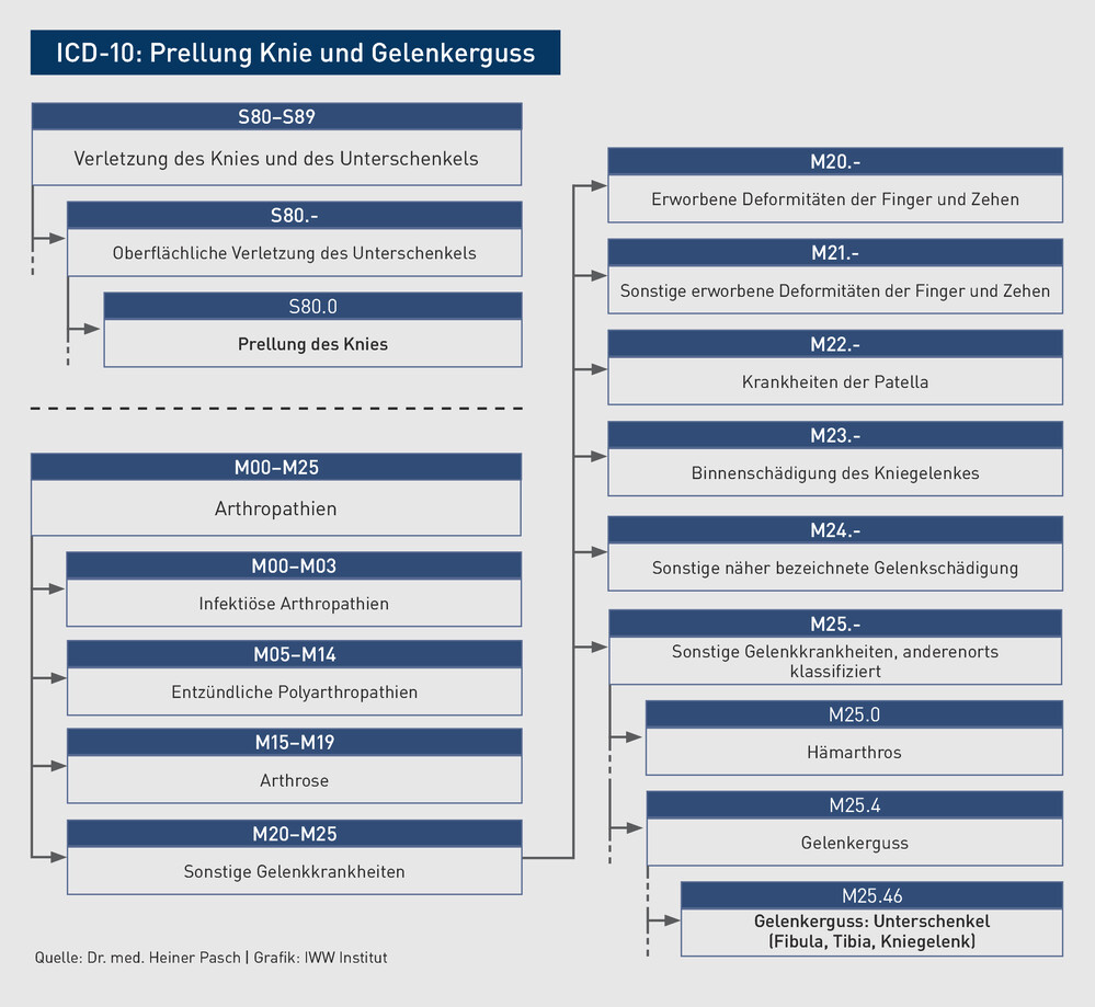 | Die Patientin schmückt am Tag vor Silvester das Haus und stürzt auf der Leiter stehend mit dieser um. Sie prellt sich das rechte Kniegelenk, hat zwar Schmerzen, kann aber noch laufen. Sie legt einen Salbenverband an. Als sie am nächsten Morgen (Silvester) eine deutliche Schwellung des Gelenks und eine deutliche Schmerzzunahme feststellt, beschließt sie, sich in der Notfallpraxis vorzustellen. Die 40-jährige Patientin kommt humpelnd und vom Sohn gestützt in die Praxis. Das rechte Kniegelenk ist deutlich geschwollen. Eine äußere Verletzung ist nicht erkennbar. Klinisch liegen keine Hinweise auf eine Meniskusverletzung vor. |