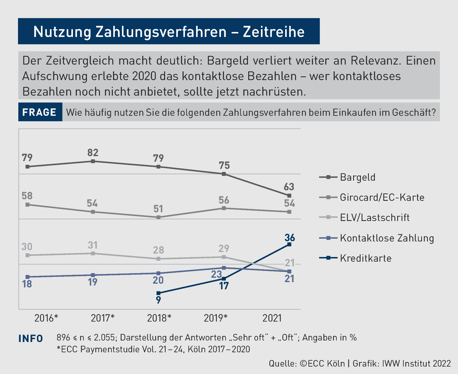 Die ECC Paymentstudie belegt ganz klar, dass die Verwendung von Bargeld rückläufig ist.