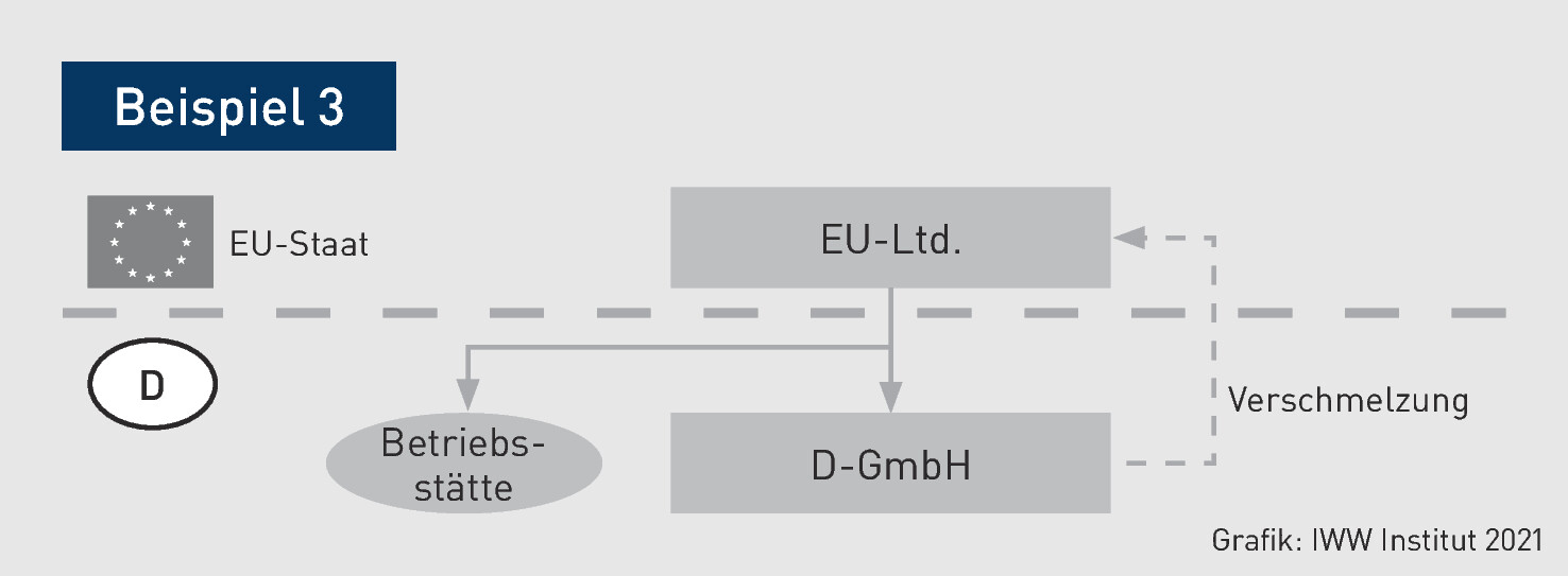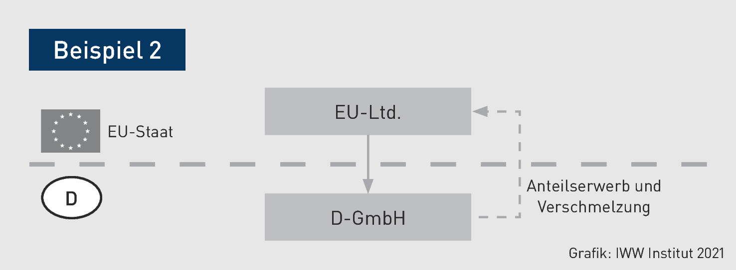 Die in einem EU-Staat ansässige EU-Ltd. erwirbt am 31.3.21 die Anteile an der inländischen D-GmbH im Wege eines Third-Party-Deals. Anschließend wird die D-GmbH upstream auf die EU-Ltd. verschmolzen mit zivilrechtlicher Wirkung zum 31.7.21 und steuerlich rückwirkend auf den 31.12.20. Die GmbH erzielte in der Vergangenheit steuerliche Verluste und operiert auch im Jahr 2021 steuerlich defizitär.