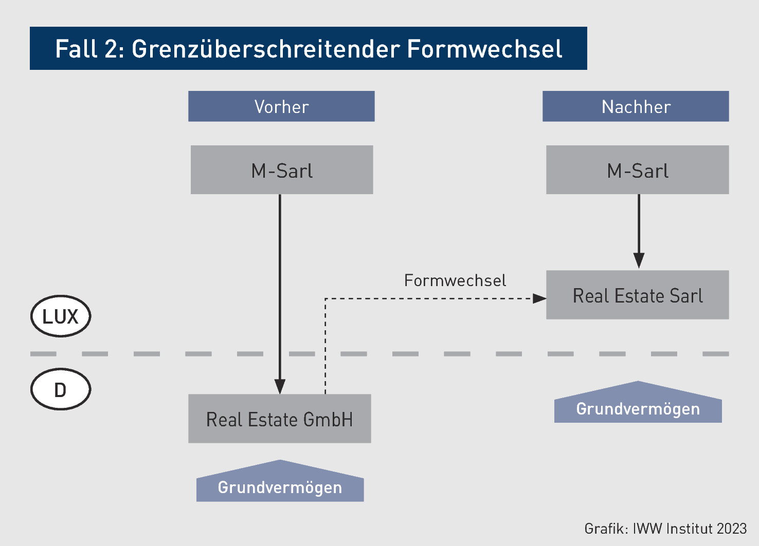 Im Jahre 2020 nimmt die deutsche Real Estate GmbH – welche über umfangreichen in Deutschland belegenen Grundbesitz verfügt – eine Sitzverlegung nach Luxemburg mit gleichzeitigem (sog. rechtsformkongruenten) Formwechsel in eine luxemburgische Sarl (GmbH aus deutscher Sicht) ohne Liquidierung der GmbH und Neugründung der Sarl vor. Diese seit einigen Jahren neue Variante der Umwandlung über die Grenze basierte bis zur Umsetzung des UmRUG lediglich auf der Rechtsprechung des EuGH und der deutschen OLG (vgl. hierzu Wilke, PIStB 18, 97). Hintergrund war eine Betriebsprüfung für die Jahre 2016 bis 2018, in der nach langen Diskussionen die Anwendbarkeit der sog. „erweiterten Grundstückskürzung“ seitens der Betriebsprüfung aufgrund des Vorliegens von schädlichen Betriebsvorrichtungen versagt wurde. Daher unterlagen die Vermietungseinnahmen der Real Estate GmbH in den Jahren 2016 bis 2018 der Gewerbesteuer. Im Rahmen der aktuellen Betriebsprüfung für die Jahre 2019 bis 2021 wird diskutiert, welche Auswirkung der Formwechsel aus deutscher Sicht hat.